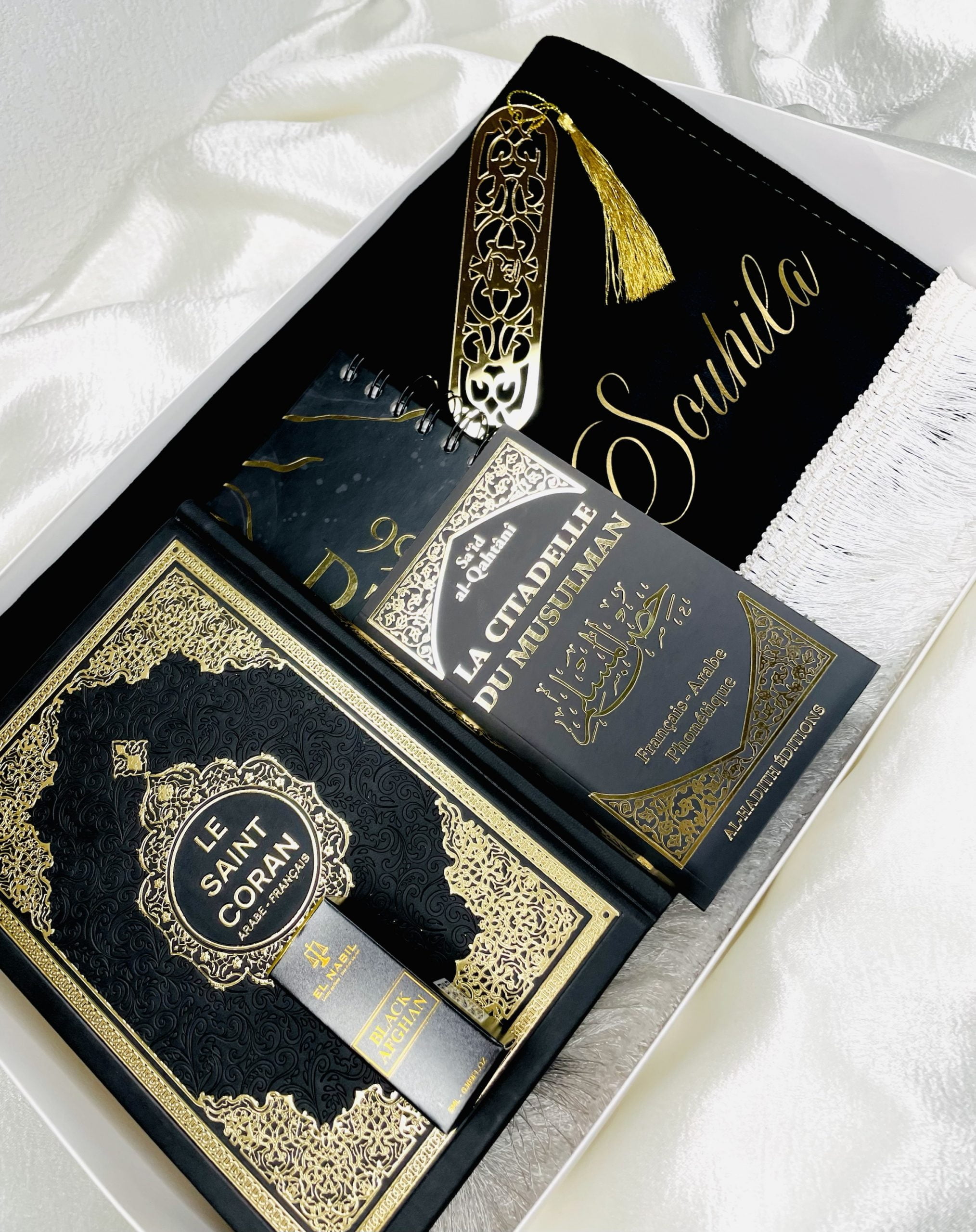 Le Coffret de Prière Musulman Personnalisé est une expression raffinée de spiritualité, combinant l’élégance esthétique avec des éléments personnalisés pour créer une expérience de prière unique. Chaque coffret est soigneusement assemblé, avec une attention particulière aux détails et à la qualité des matériaux.