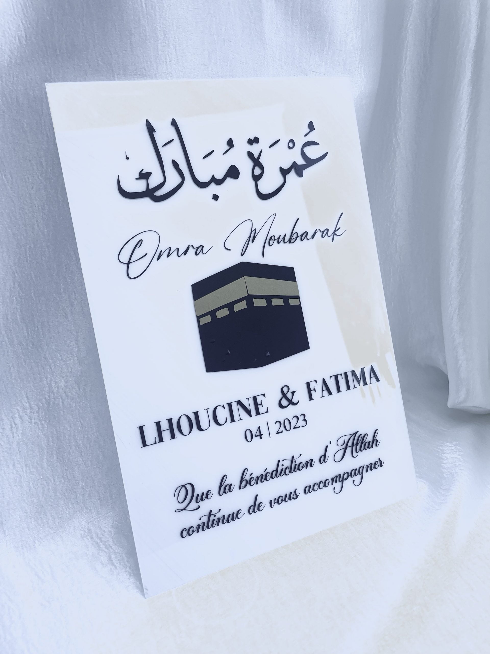 Entdecken Sie diese schöne personalisierte Plexi Rahmen Omra Mubaraka. Ein Geschenk für eine Reise zurück nach Mekka.